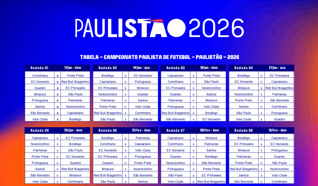 O Paulistão 2026 chega com um formato inspirado na fase de liga da UEFA Champions League, com um grupo único na etapa inicial. As 16 equipes foram distribuídas em quatro potes para o sorteio da tabela. Na primeira fase, os times enfrentam os adversários do próprio pote e disputam ainda cinco rodadas contra clubes dos demais potes.